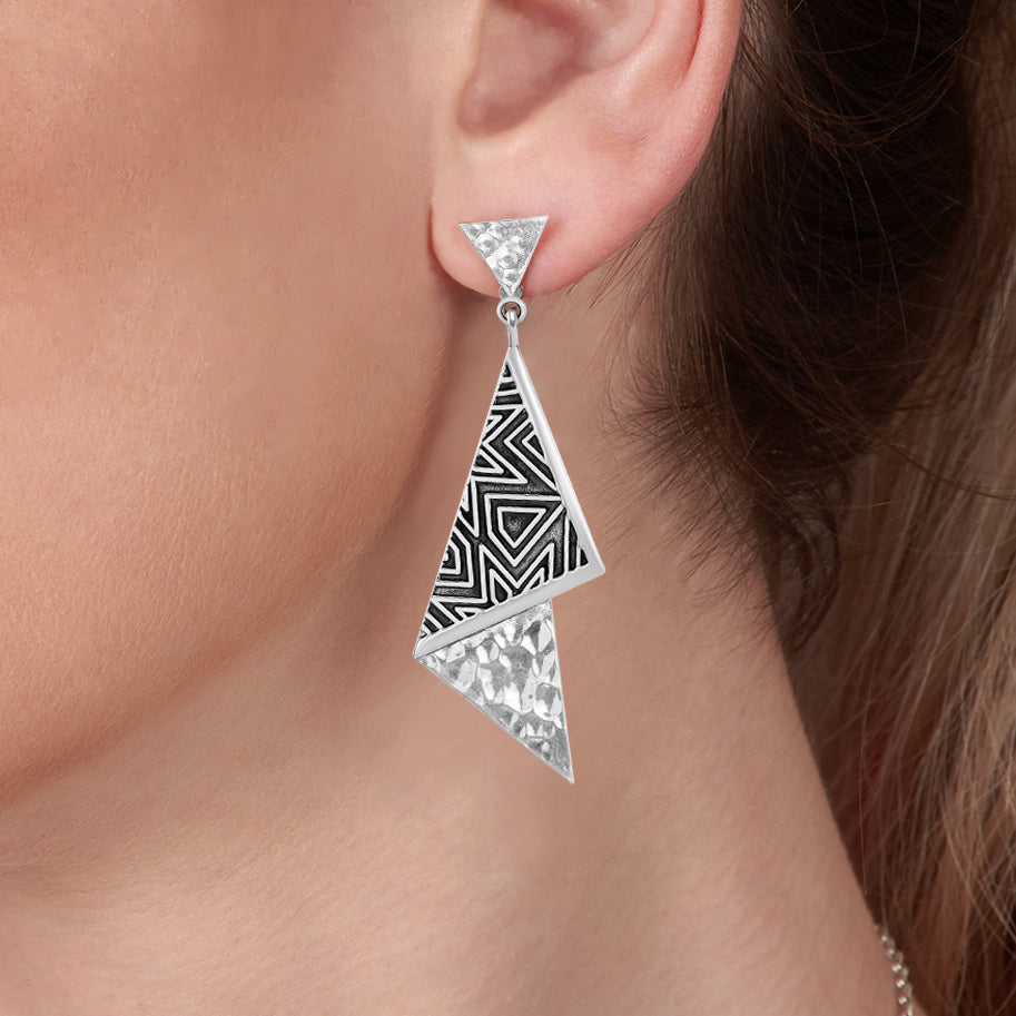 Upgrade your earring game with these quirky Convergence Earrings. Featuring a mix of Islamic patterns and modern style, these unsymmetrical silver earrings are perfect for the confidence and unique woman.