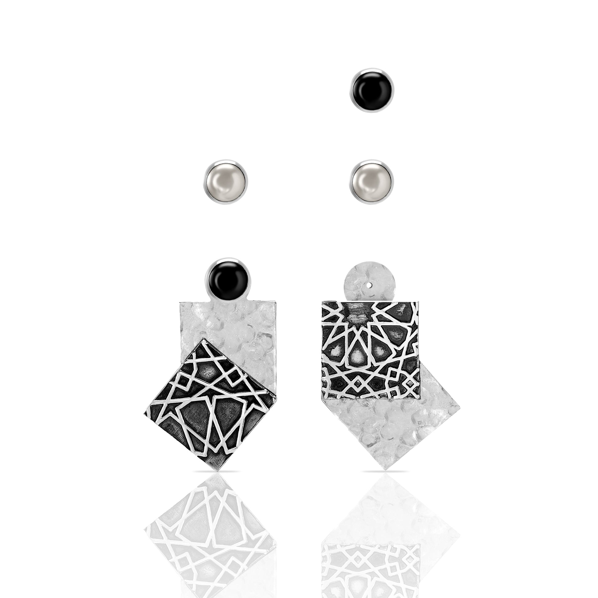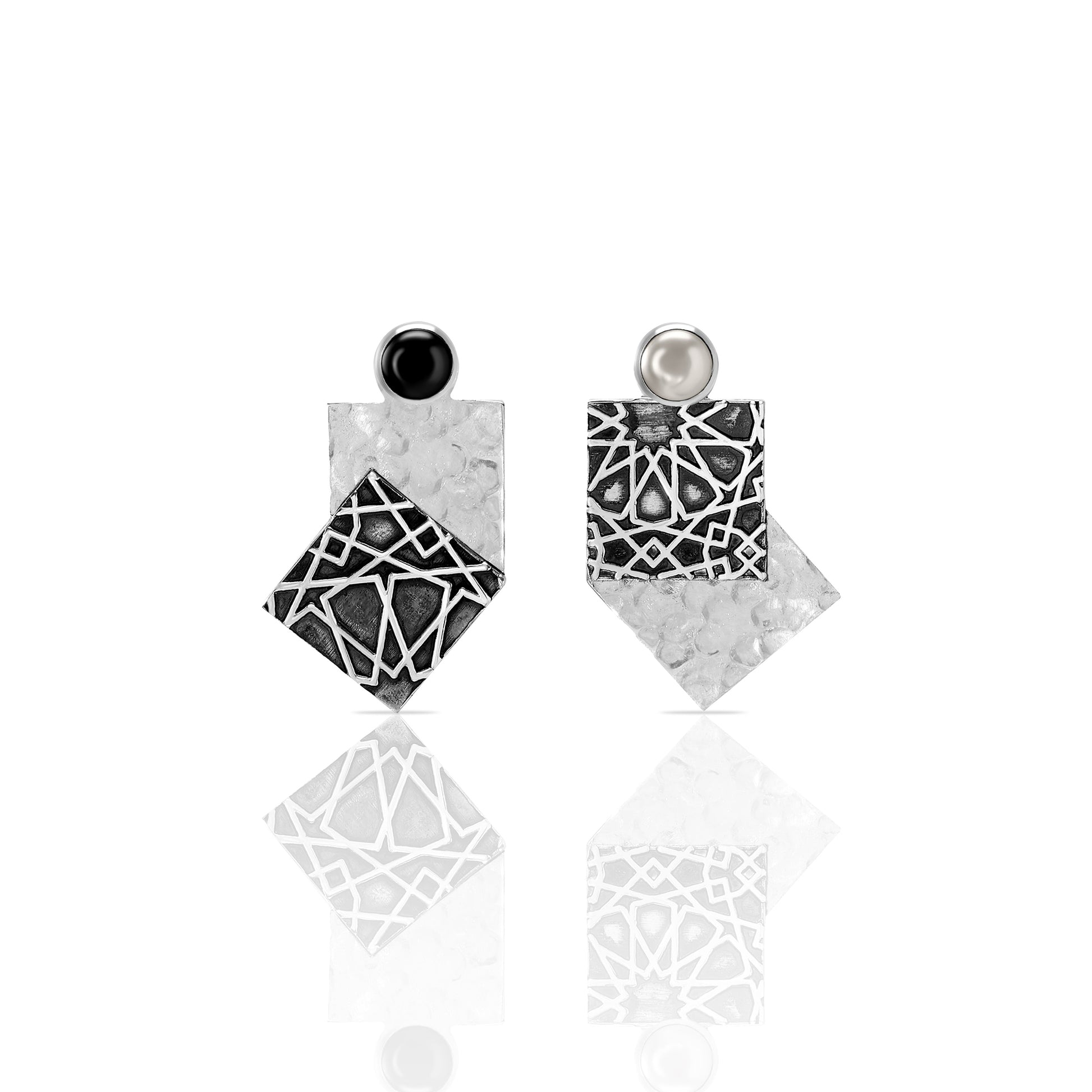 Sterling Silver 925, Natural Cultured Pearl, and Black Onyx Stone