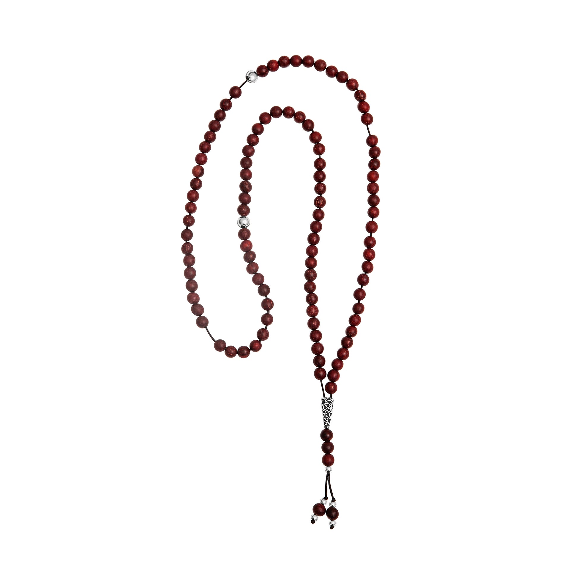Handcrafted prayer beads bracelet made with 925 silver and mahogany color wood.